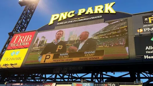 George Washington baseball alum Shane Kemp, who recently completed his second year as a pitcher in the Pittsburgh Pirates farm system, was honored as a winner of the Pirates Community Commitment Award in an on-field ceremony at PNC Park last weekend. The honor is presented to a players from each Minor League affiliates that best exemplifies their commitment to their communities as well as their leadership on and off the field.