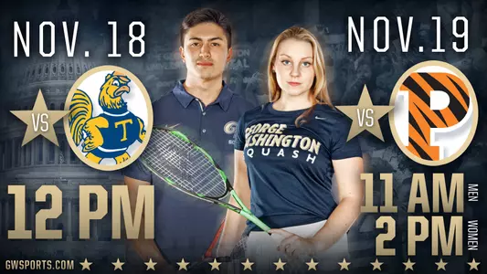 Nov. 15, 2017 WASHINGTON â€" The George Washington women's squash squad will open their home slate at the Matthew J. Grossman squash courts at the Lerner Health and Wellness Center this weekend when they play host to No. 3 Trinity on Saturday at 12:00 p.m. and No. 4 Princeton on Sunday at 2:00 p.m.
