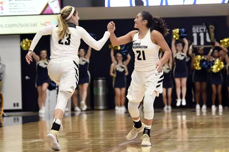 SHARP SHOOTERS: GW hit 10 three pointers in the win over American, with a quintet coming courtesy of junior Kelsi Mahoney who finished with a career-high 15 points. It was the third time this season GW has hit double-digit three pointers, with the team registering a season-best .625 percentage from beyond the arc.