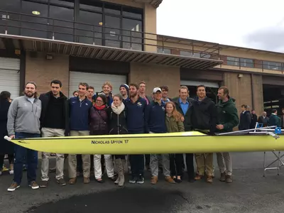 In its debut races under its new name - Nicholas Upton '17 - the Varsity 8 went on to win both of its races on Saturday at the GW Invitational, picking up wins over Holy Cross, FIT and MIT.