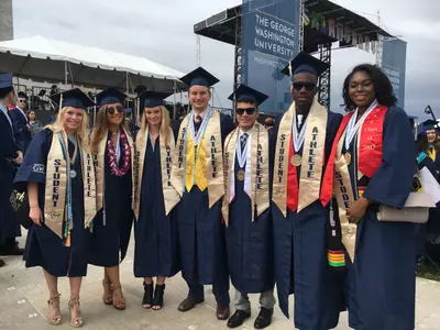 After winning 15 team championships in nine different sports, claiming back-to-back national service championships for performing more hours of community service than any Division 1 school nationwide, and accumulating four consecutive semesters with a department GPA greater than 3.15, these 112 new GW graduates have already made a difference, though their greatest contributions to the world are still to come.