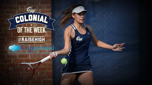 Sara Grubac provided the match clinching victory for the Colonials in their season opener against Harvard on Saturday. With the match tied at 3-3, Grubac needed to defeat Harvard's Neha Gupta, ranked 113 in the Intercollegiate Tennis Association (ITA), to secure the GW win. The Belgrade, Serbia, native took the first set in extra points, defeating Gupta 7-6(4). With only one more win needed to edge the Crimson, Grubac continued to battle and came up on top, 6-4, to complete the 4-3 GW victory.