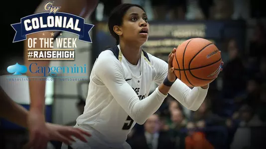 The senior guard rose to the occasion in Saturday's win over George Mason. She connected on 10-of-17 field goals and 8-of-9 free throws for a career-high 28 points. She also finished with a game-high eight rebounds along with a steal. Twenty of her 28 points came after halftime as GW erased a four-point deficit at the break to topple previously unbeaten-in-conference George Mason.