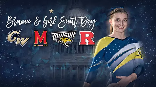 LEADING OFF: The No. 19 George Washington gymnastics team opens a busy weekend of competition on Friday night when it visits the site of the 2018 East Atlantic Gymnastics League (EAGL) Championship for tri-meet action with Rutgers and EAGL foe Towson at 7 p.m., before returning home to the Charles E. Smith Center on Sunday to host the same pair of squads, along with Maryland, for Brownie and Girl Scout Day at 1 p.m.