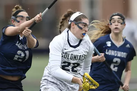 RAISING THE BAR: Nine Colonials topped their career-highs last week at American and against Mount St. Mary's. Against the Eagles, sophomore Morgan McDonnell tallied a career-high four goals while registering a personal-best six shots. Freshman Ioanna Mantzouratos also had a career-high day at American, grabbing two draw controls, while sophomore Aidan Cage surpassed her personal-best by snagging three off the draw. In addition, freshman Abby Carlin tallied her first career-goal, Camaryn Kerns made a career-high two assists, and freshman keeper Jenna Oler picked up eight ground balls. A trio of Colonials also had career-high days against Mount St. Mary's, including Michaela Bartley (4 ground balls), Caroline Kiernan (4 shots), and Katie Quinn (7 shots).