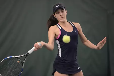 The Colonials continued their momentum from the day before in doubles play, with Maria Siopacha and Melis Bayraktaroglu winning at the No. 1 position before Marie-Louise Decamps and Diana Kussainova were able to clinch the early point at No. 2 with a 7-5 victory.