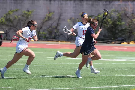 The Spiders came out hot to start the first half, scoring three quick goals to establish an early 3-0 lead. The Colonials fought back, with senior Camaryn Kerns finding a feed from sophomore Katie Quinn to get on the board, but Richmond continued to push on attack and went on a 4-0 run. GW responded with back-to-back goals from senior co-captain Jocelyn Donohue and Kerns, but the Spiders scored three more times to go into the break with a 10-3 lead.