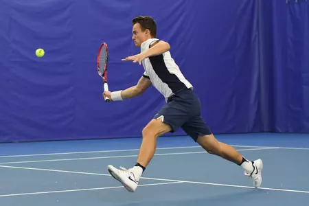 The Buff and Blue swept their conference opponent in doubles action to secure the early point before splitting singles play with the Spiders evenly at three apiece. For the Colonials, it was Chris Reynolds, Chris Fletcher, and Jakub Behun that come out on top in solo action with wins at the Nos. 2, 3, and 5 positions, respectively.