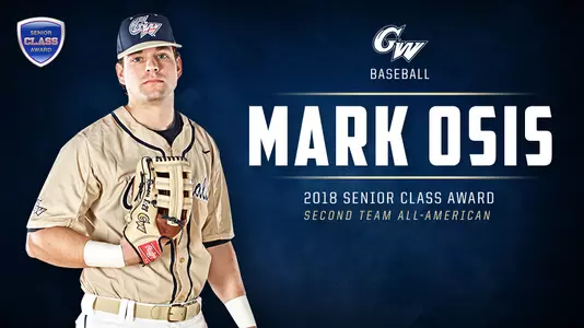 OVERLAND PARK, Kan. -- Recent graduate Mark Osis of the GW baseball team has been named a 2018 Senior CLASS Award Second Team All-American.
