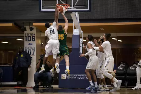 AS A JUNIOR AT GW (2019-20): Member of the GW Athletic Department Dean’s List (Fall ‘19) … played in all 32 games with 28 starts … averaged a career-best 35.7 minutes per game … finished third on the team in scoring (11.7) … finished second on the team and the A-10 in made 3-pointers with 83 … had 10 points in the final home game of the season vs. Fordham (3/4) … added 12 points in 39 minutes at VCU (2/20) … scored 17 points on 4-of-9 from the outside and finished with 17 points vs. Richmond (2/26) … finished with 19 points with four 3-pointers and seven free throws vs. La Salle (2/22) … led the team in scoring with 20 points and four 4-pointers at Duquesne (2/19) … knocked down four 3-pointers in a 19-point effort at George Mason (2/15) … career-high 35 points on 7-of-13 from downtown in 57 minutes vs. Davidson (1/29) … hit three triples and finished with 14 points vs. Saint Joseph’s (1/22) … reached 20 points for the third-time this season and knocked down 4-of-7 from the outside (1/18) … team-high 12 points on 4-of-6 from the outside against Vermont (21/31) … led the team with 20 points in a home win over Longwood (12/28) … scored 14 points in 40 minutes vs. Harvard (12/21) …made three 3-pointers and finished with 11 points in 40 minutes against Delaware (12/7) …finished with 11 points and four rebounds in 34 minutes against Boston University (12/4) … added nine points, two rebounds and two steals against Milwaukee (11/24) …had a season-best 22 points in 40 minutes with four rebounds against Evansville (11/23) … dropped 14 points on 4-of-7 from the outside vs. Kansas City (11/22) …13 points off the bench with a season-high 13 field goal attempts vs. Morgan State (11/16) … four assists in 25 minutes against American (11/12) … started in GW’s season opener at Towson (11/5) and continued his long range prowess from last season by canning 4-of-8 triplets to finish the night in double figures with 14 points ... Recognized on the Fall 2019 GW Athletics Academics Dean's List.